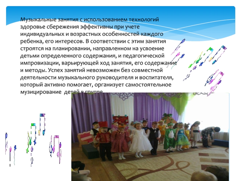 Слайд 12Музыкальные занятия с использованием технологий здоровье сбережения эффективны при учете