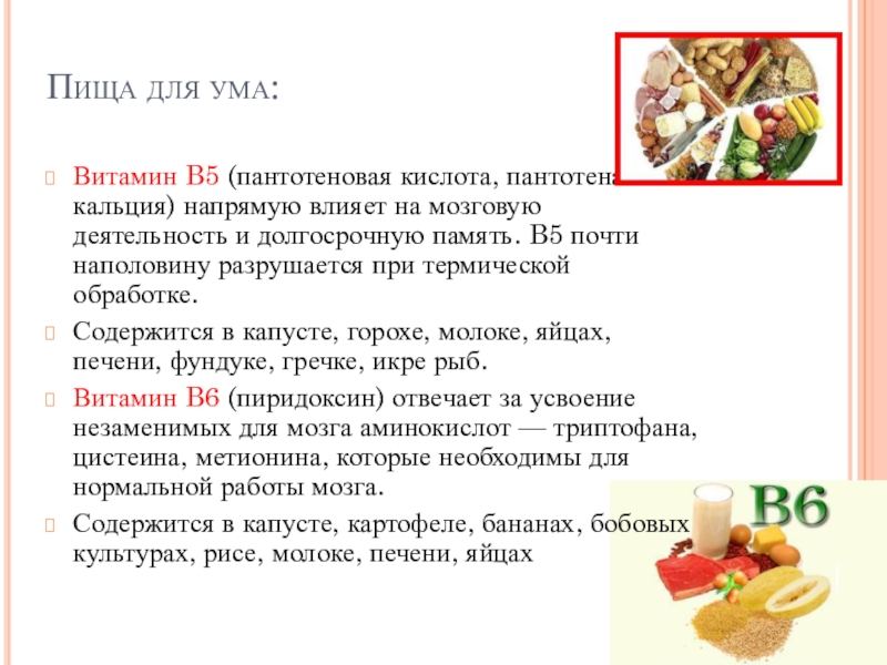 влияет на мозговую деятельность и долгосрочную память. B5 почти наполовину