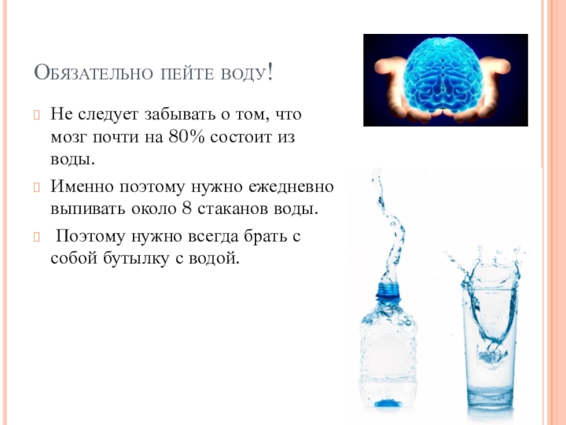 Слайд 4Обязательно пейте воду!