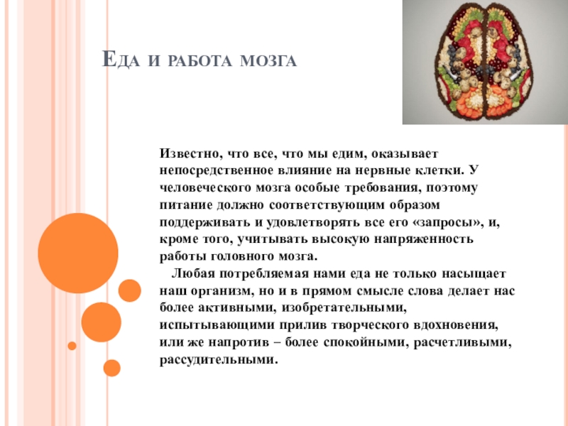 Слайд 3Еда и работа мозга