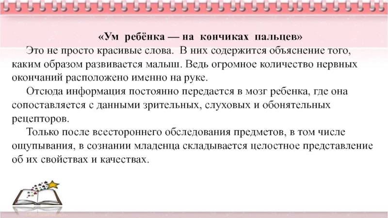 «Ум ребёнка — на кончиках пальцев»Это не просто красивые слова. В них
