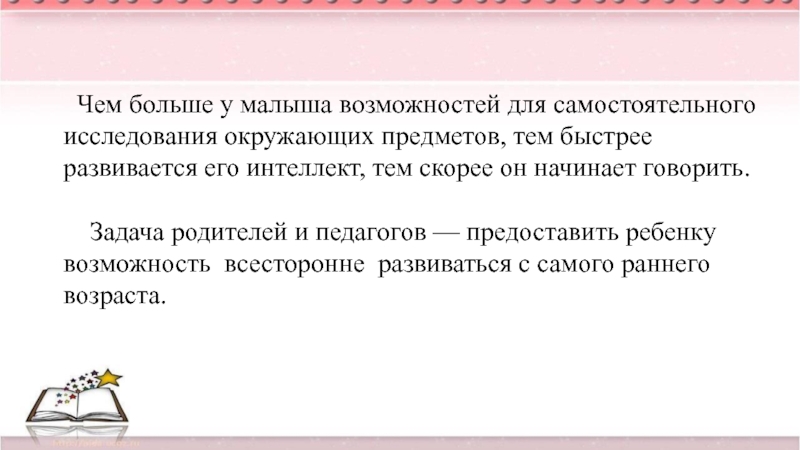 предметов, тем быстрее развивается его интеллект, тем скорее он начинает