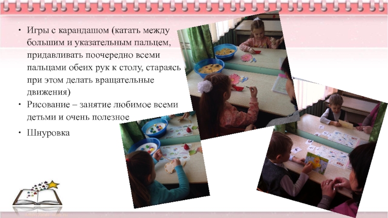 Слайд 9Игры с карандашом (катать между большим и указательным пальцем, придавливать