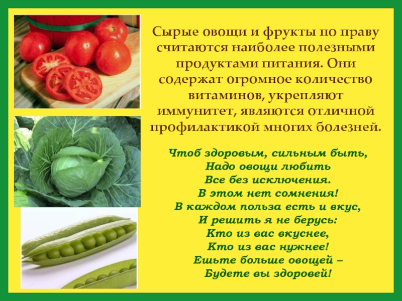 Сырые овощи и фрукты по праву считаются наиболее полезными продуктами питания. Они содержат огромное количество витаминов, укрепляют иммунитет, являются отличной профилактикой многих болезней.