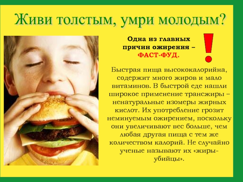 Одна из главных причин ожирения – ФАСТ-ФУД.