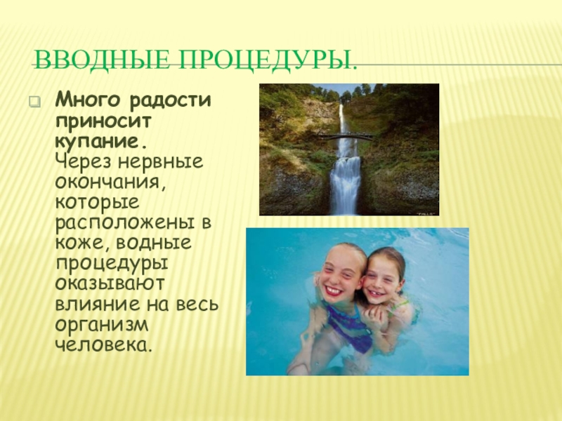 в коже, водные процедуры оказывают влияние на весь организм человека.