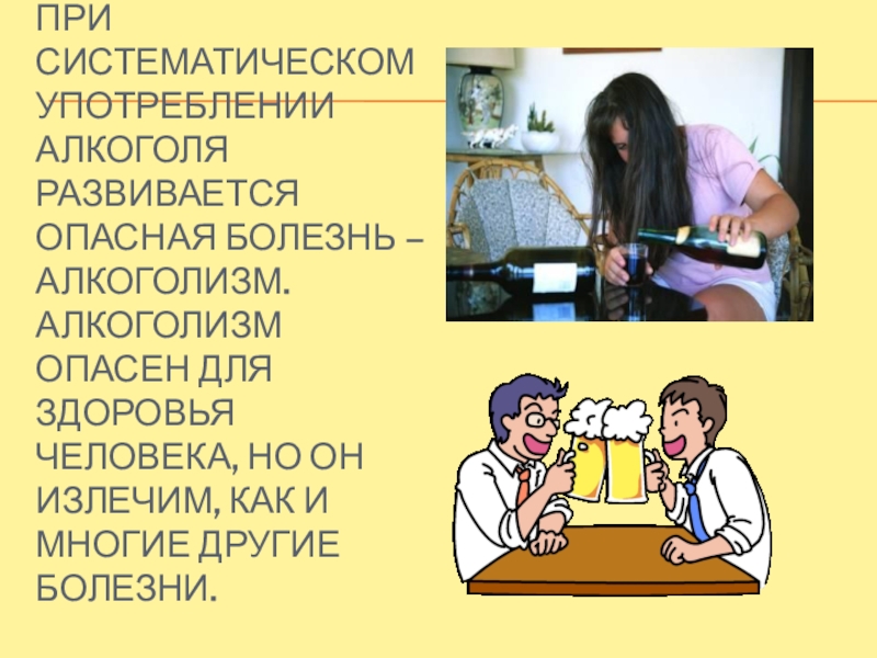 Слайд 21При систематическом употреблении алкоголя развивается опасная болезнь – алкоголизм. Алкоголизм