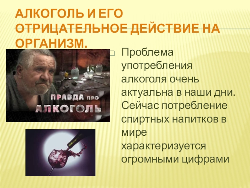 Слайд 20Алкоголь и его отрицательное действие на организм.