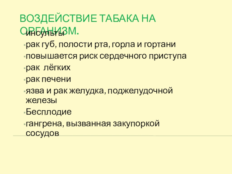 Слайд 16Воздействие табака на организм.