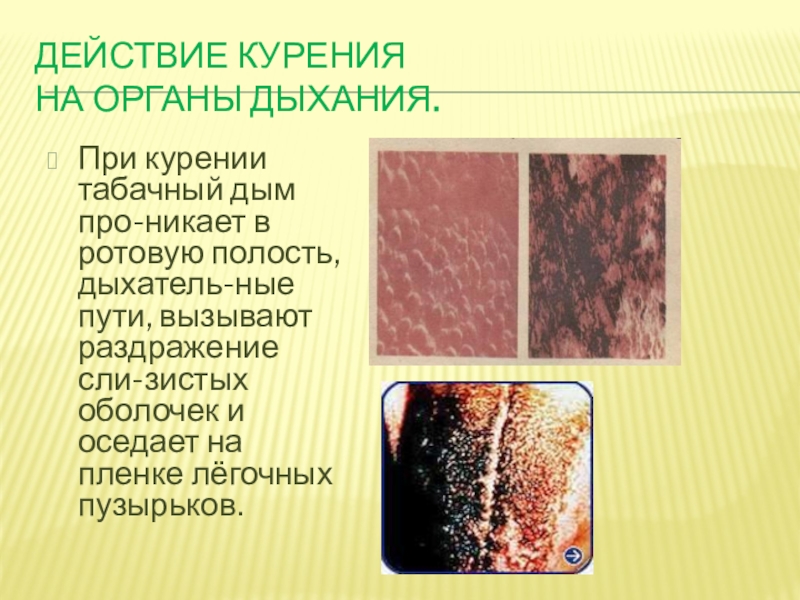 Слайд 17Действие курения