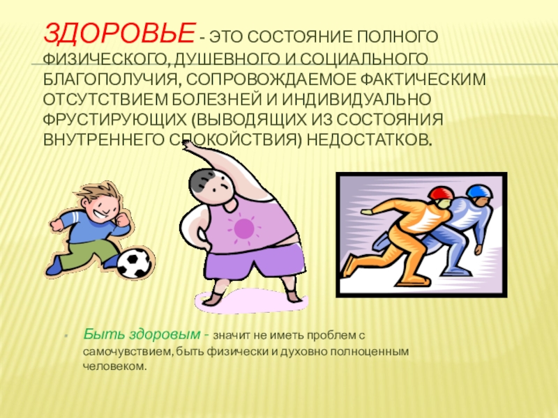 Слайд 2Здоровье - это состояние полного физического, душевного и социального благополучия,