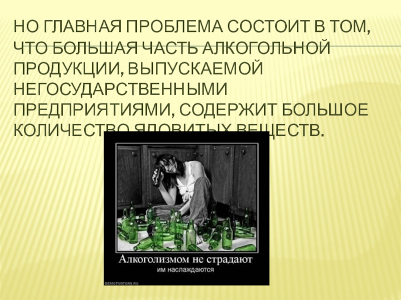 Слайд 22Но главная проблема состоит в том, что большая часть алкогольной
