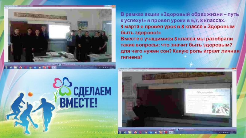 В рамках акции «Здоровый образ жизни – путь к успеху!» я провел уроки в 6,7, 8 классах.3