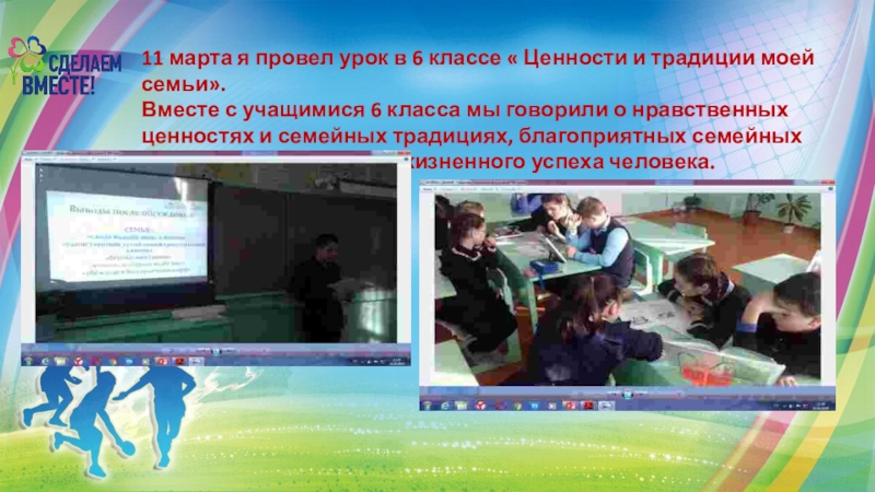 11 марта я провел урок в 6 классе « Ценности и традиции моей семьи».