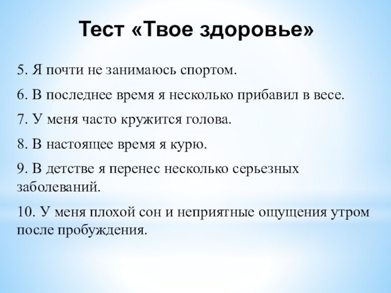 Тест «Твое здоровье»
