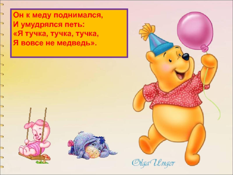 Слайд 55Он к меду поднимался,
