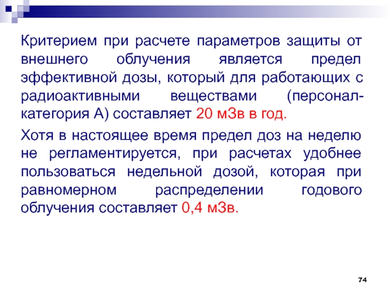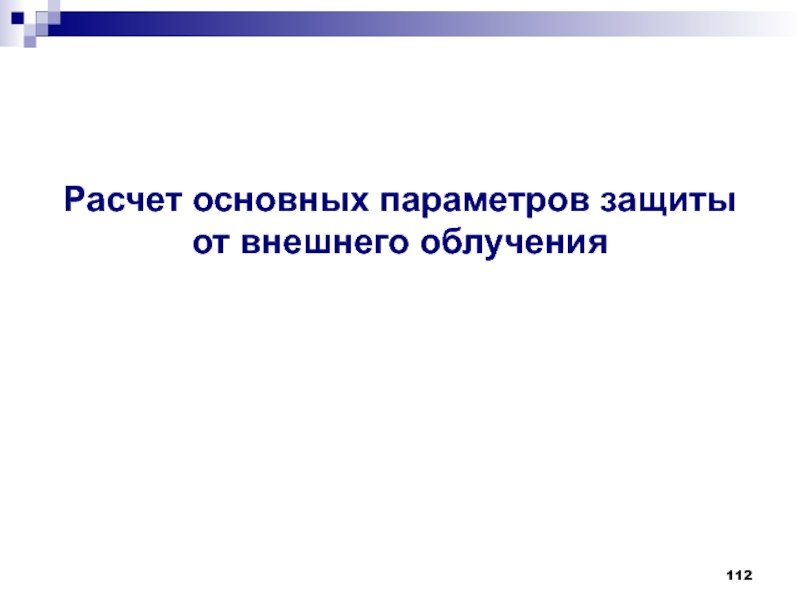 Слайд 112Расчет основных параметров защиты от внешнего облучения