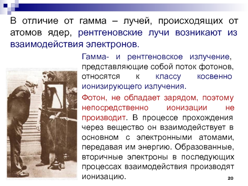 Слайд 20Гамма- и рентгеновское излучение, представляющие собой поток фотонов, относятся к