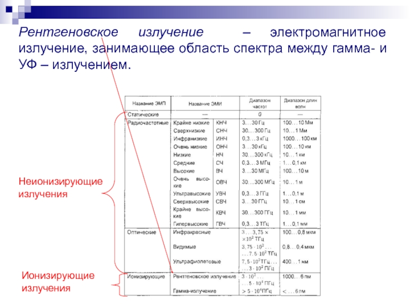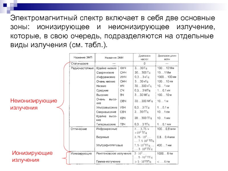 Слайд 6Электромагнитный спектр включает в себя две основные зоны: ионизирующее и