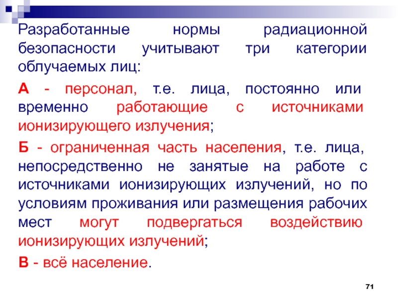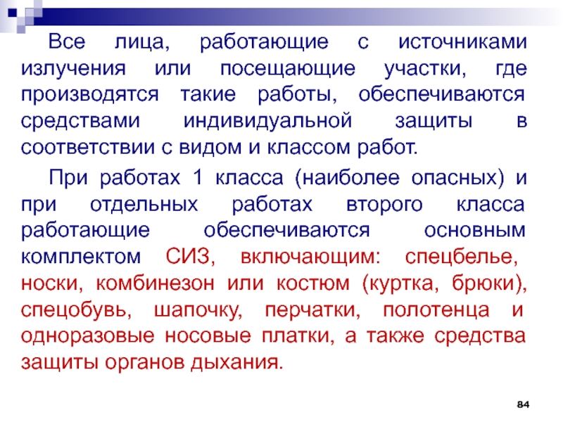Слайд 84Все лица, работающие с источниками излучения или посещающие участки, где