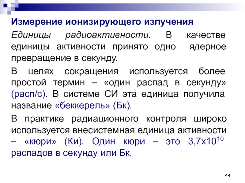 Слайд 44Измерение ионизирующего излучения