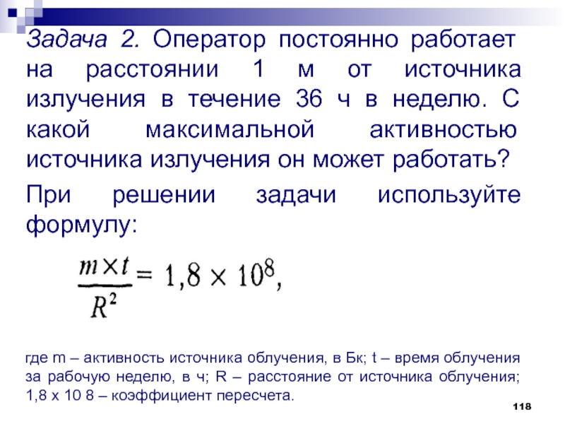 Слайд 118Задача 2. Оператор постоянно работает на расстоянии 1 м от