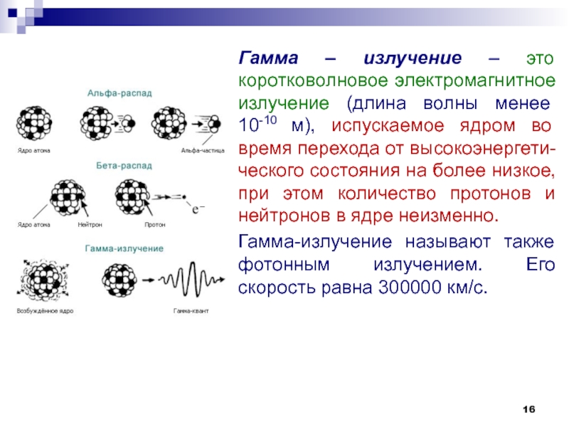 Слайд 16Гамма – излучение – это коротковолновое электромагнитное излучение (длина волны