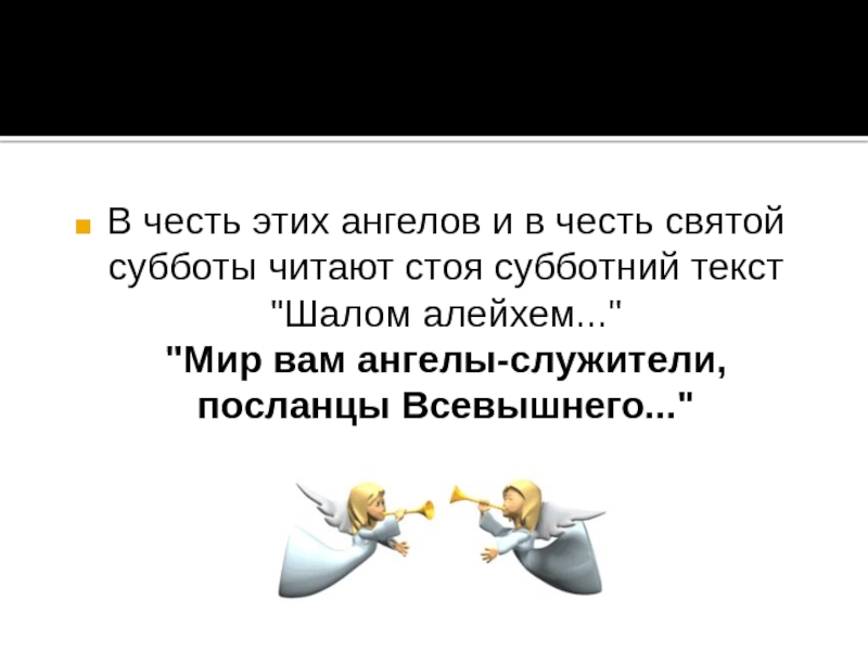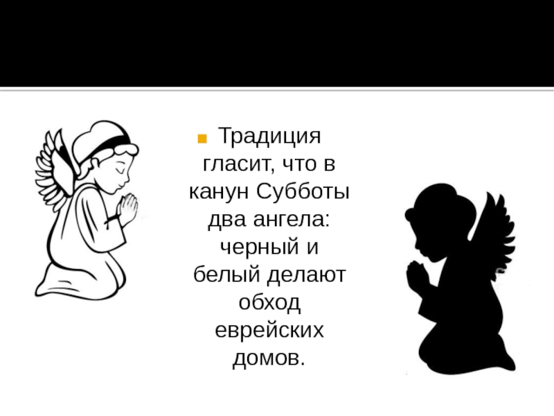 Слайд 2Традиция гласит, что в канун Субботы два ангела: черный и