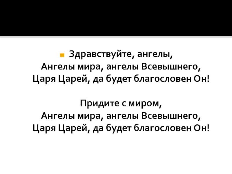 Слайд 10Здравствуйте, ангелы, Ангелы мира, ангелы Всевышнего, Царя Царей, да будет благословен Он! Придите