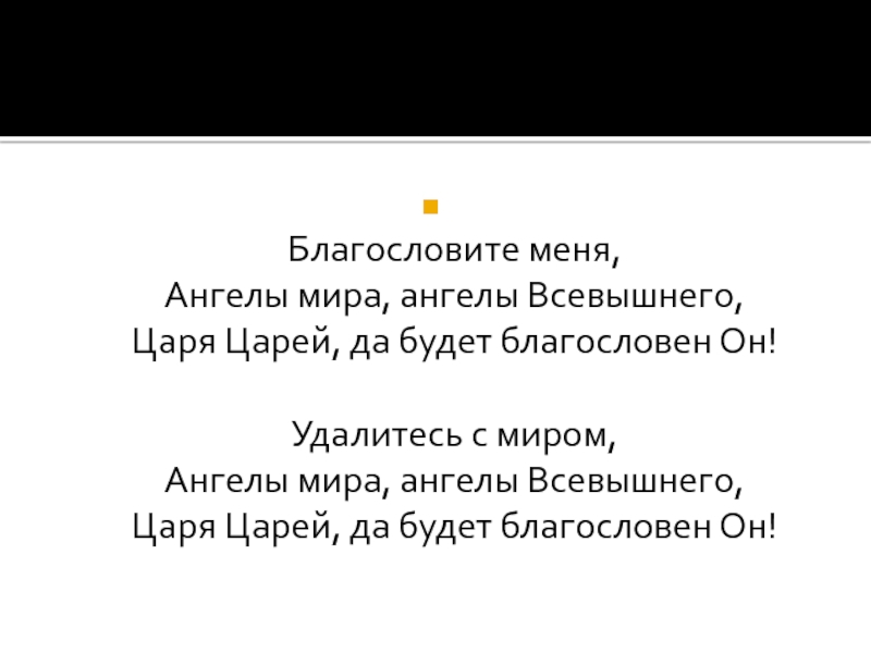 Слайд 12 Благословите меня, Ангелы мира, ангелы Всевышнего, Царя Царей, да будет благословен Он! Удалитесь