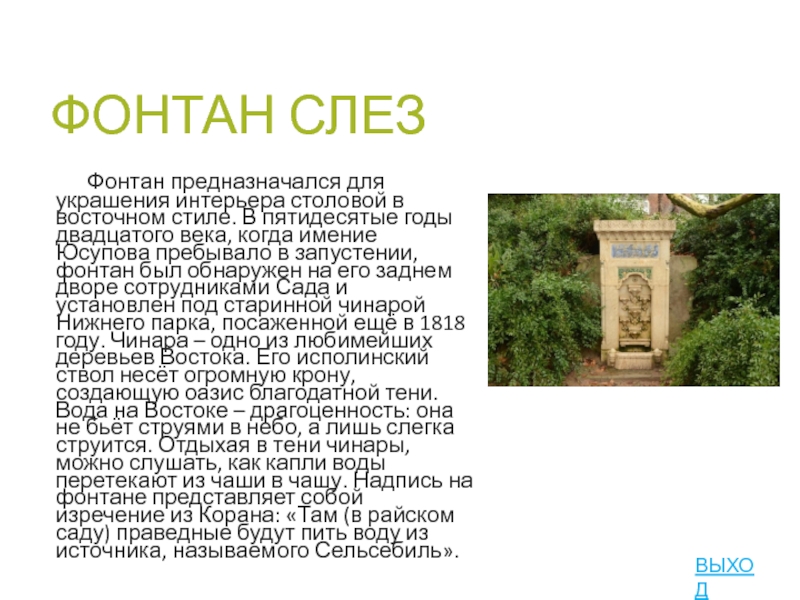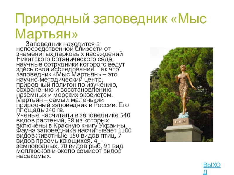 В Нижнем парке представлена авторская копия в искусственном мраморе, который более устойчив к атмосферной среде. И, по отзывам посетителей, она уже добавила очарования и особого шарма прекрасному Никитскому Саду…