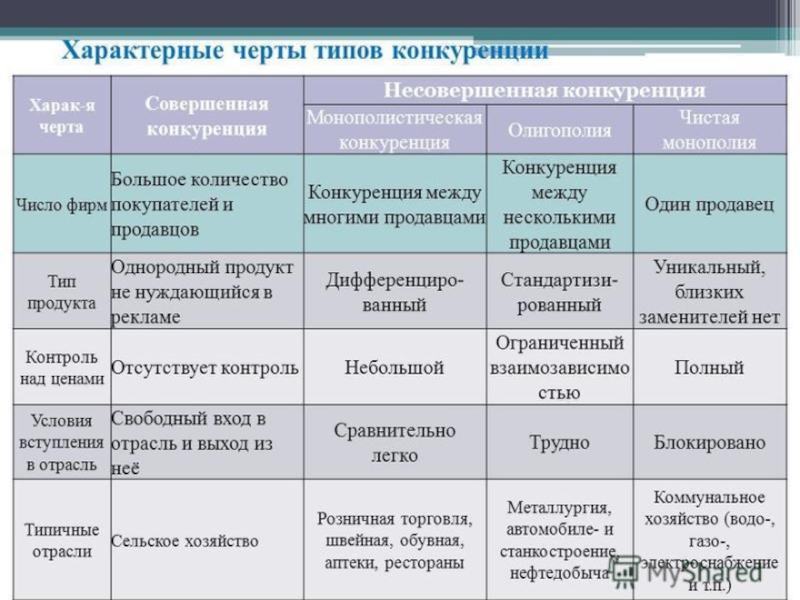 Тема: Совершенная и несовершенная конкуренция