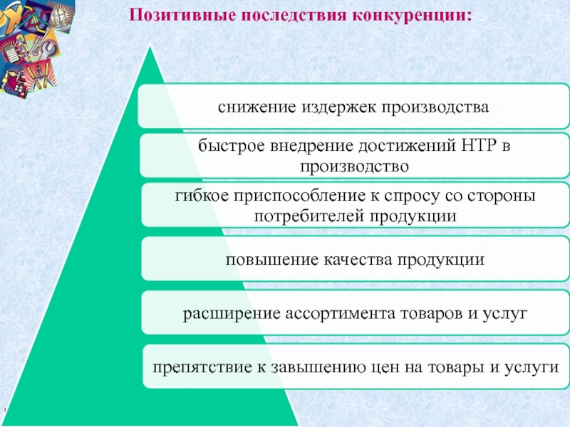 Слайд 23Позитивные последствия конкуренции: