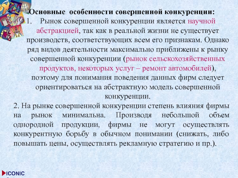 Рынок совершенной конкуренции является научной абстракцией, так
