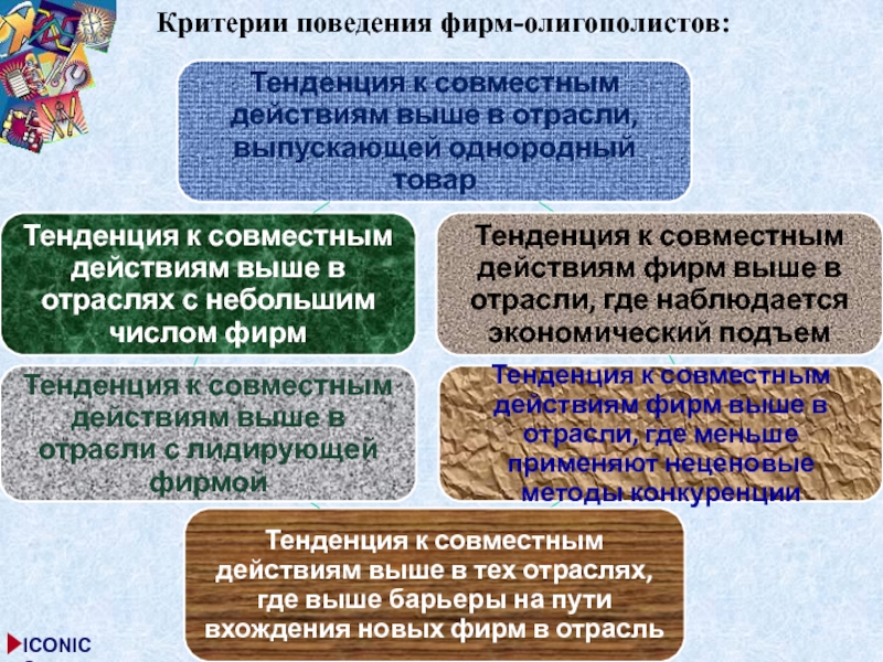 Слайд 17Критерии поведения фирм-олигополистов: