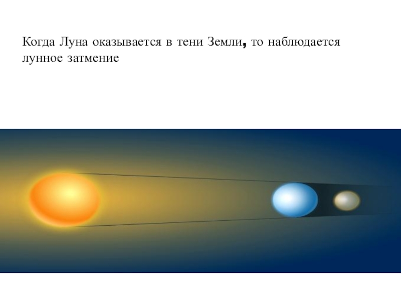 Слайд 16Когда Луна оказывается в тени Земли, то наблюдается лунное затмение
