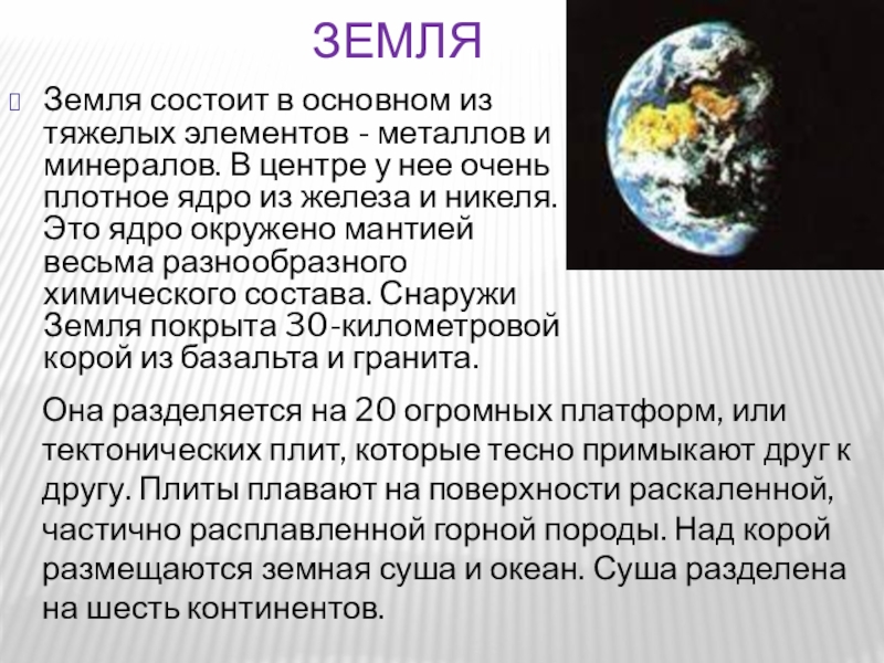 Слайд 20Земля состоит в основном из тяжелых элементов - металлов и
