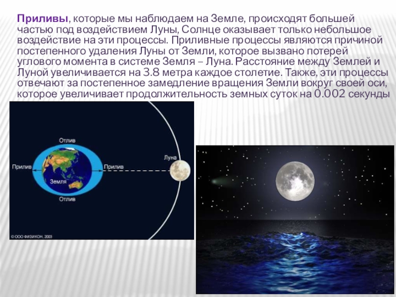 воздействием Луны, Солнце оказывает только небольшое воздействие на эти процессы.