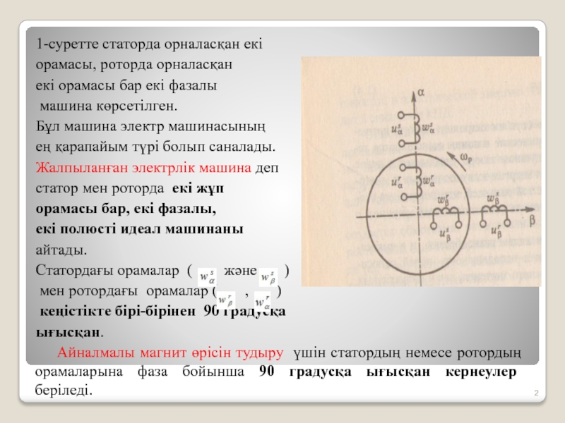 екі фазалы, екі полюсті машинаны қарастырайық . Машина жұмыс жасаған