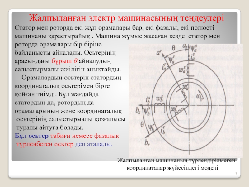 Слайд 7Жалпыланған электр машинасының теңдеулері