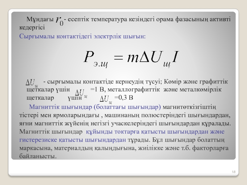 Слайд 18Мұндағы - есептік температура кезіндегі орама фазасының активті