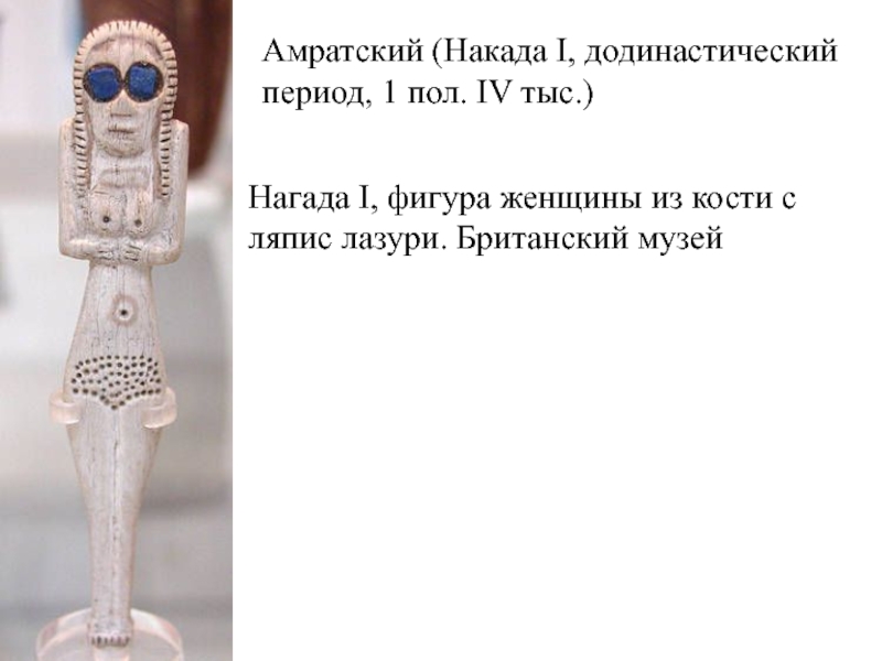 Амратский (Накада I, додинастический период, 1 пол. IV тыс.) Нагада I, фигура женщины из кости с ляпис