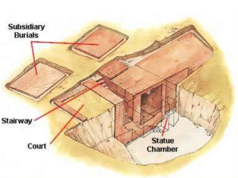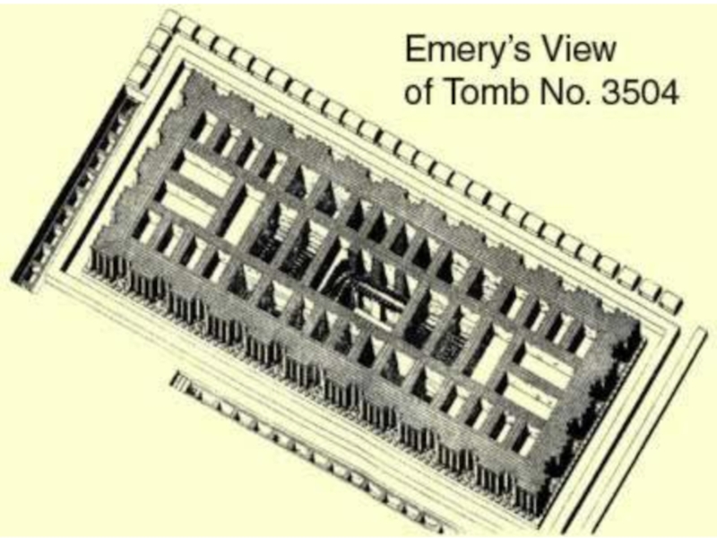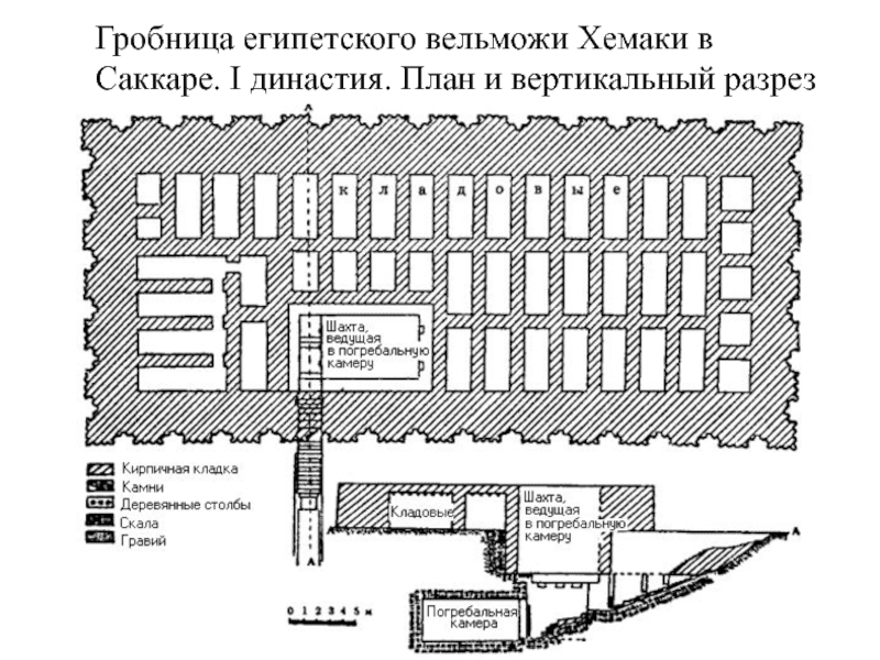 Гробница египетского вельможи Хемаки в Саккаре. I династия. План и вертикальный разрез