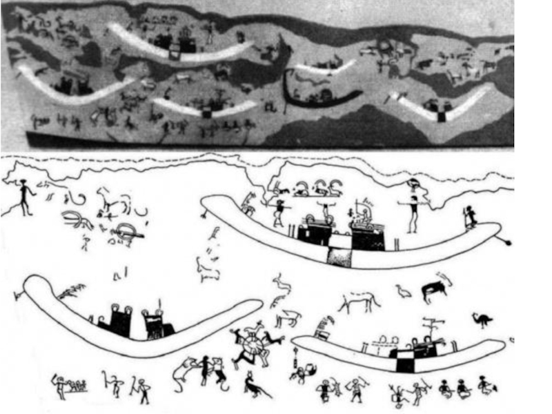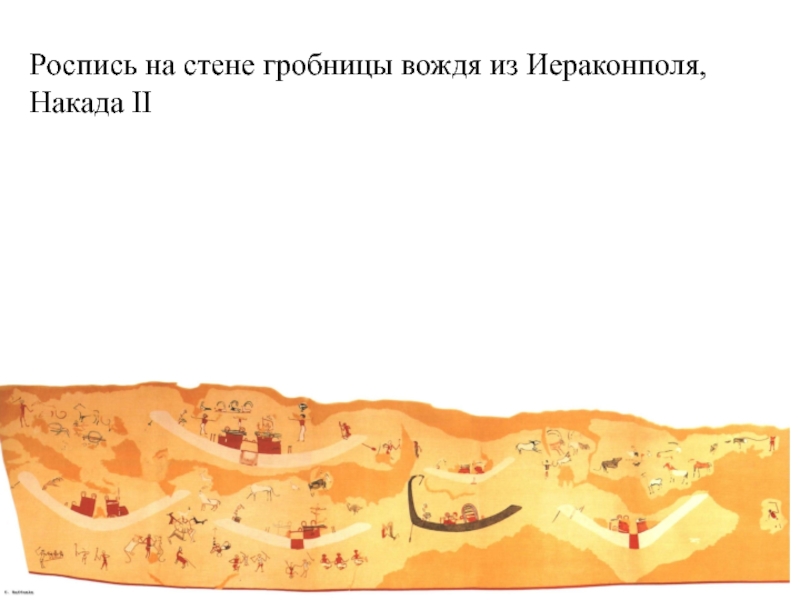 Слайд 39Роспись на стене гробницы вождя из Иераконполя, Накада II