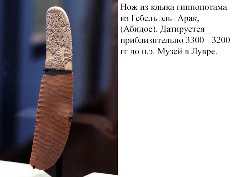Слайд 32Нож из клыка гиппопотама из Гебель эль- Арак, (Абидос). Датируется