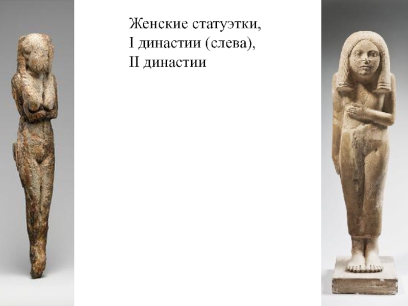 Слайд 81Женские статуэтки, I династии (слева), II династии