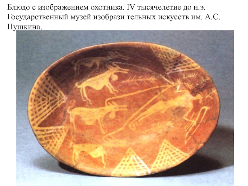 Блюдо с изображением охотника. IV тысячелетие до н.э. Государственный музей изобрази тельных искусств им. А.С. Пушкина.