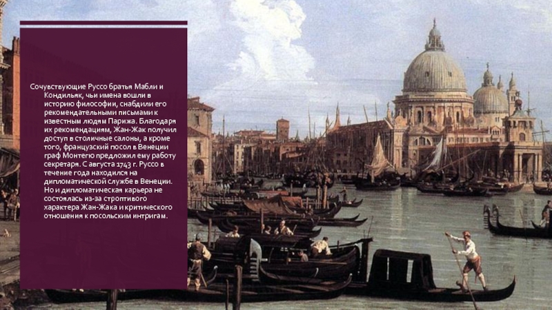 Слайд 9Знакомство с политической и культурной жизнью Женевы, Франции и Венеции
