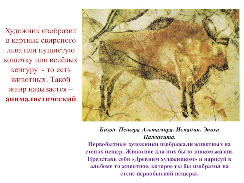 художником» и нарисуй в альбоме то животное, которое ты бы изобразил на стене первобытной пещеры.