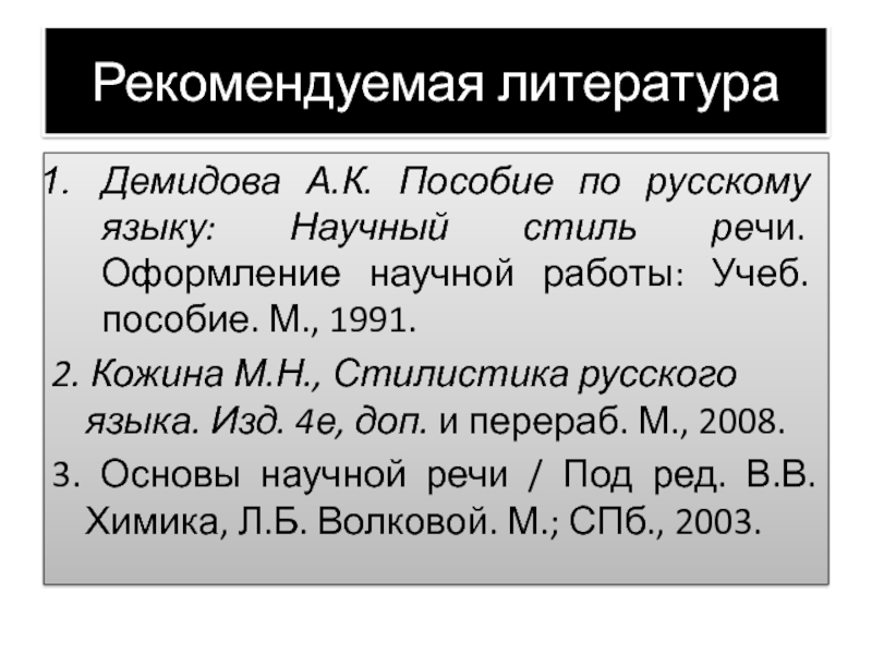 Демидова А.К. Пособие по русскому языку: Научный стиль речи.